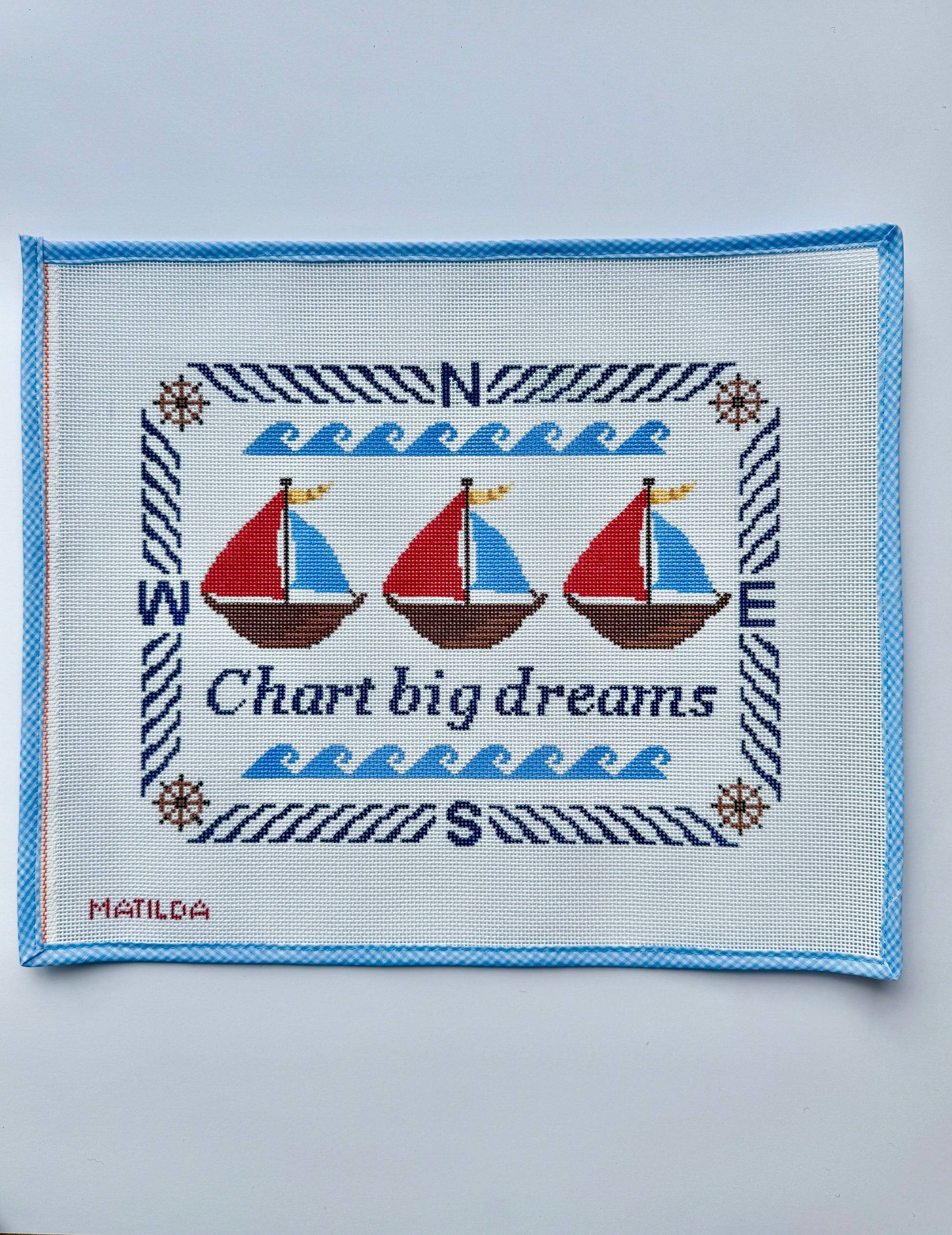 Chart Big Dreams Sailing Boat HAND PAINTED Needlepoint Tapestry Canvas